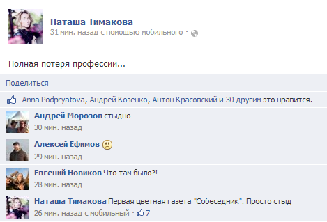 Пресс-секретарь Дмитрия Медведева Наталья Тимакова на своей страничке в соцсети написала, что это полная потеря профессии.