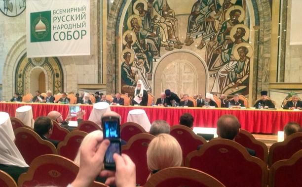 Фото с выступления Патриарха Московского и всея Руси Кирилла на Всемирном Русском Народном Соборе глава региона опубликовал в твиттере: