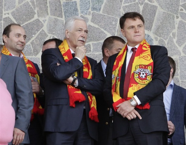 8' Поддержать тульскую команду пришел губернатор Владимир Груздев и председатель высшего совета партии «Единая Россия» Борис Грызлов.