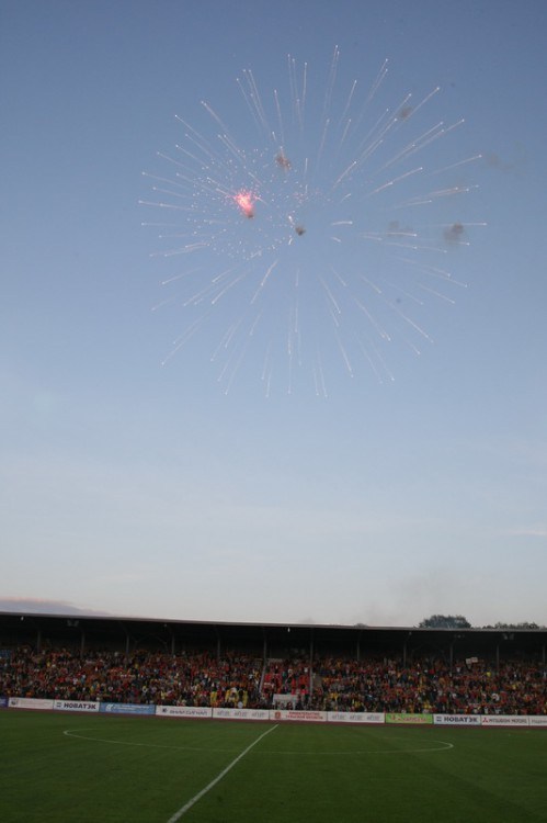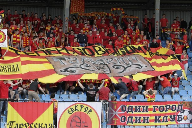 60' Болельщики решили "отомстить" гостям за обидный гол. Весь стадион скандирует "Кто в премьер-лигу? МЫ В ПРЕМЬЕР-ЛИГЕ!"