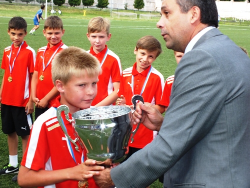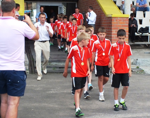 Как сообщает официальный сайт новомосковского «Химика», 11 июня, по возвращении триумфаторов домой, на поле стадиона «Химик» состоялась торжественная церемония чествования юных футболистов. Ребята, на шеях которых уже красовались золотые медали, получили из рук главы новомосковской администрации Вадима Жерздева заветный кубок, грамоты, а также сладкие подарки. Вадим Анатольевич пожелал юным спортсменам в дальнейшем добиваться новых побед.
