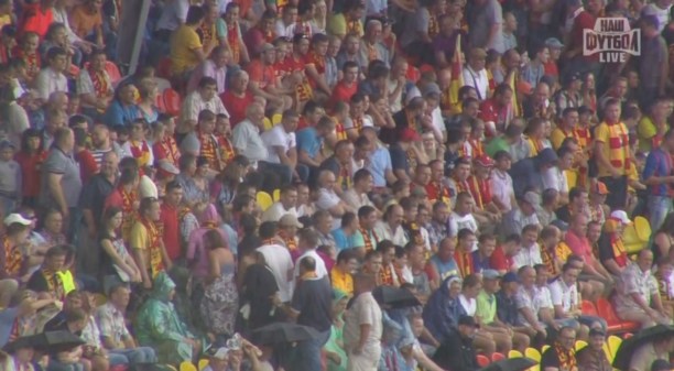 А тем временем болельщики уже находятся на трибунах. Сегодня ожидается аншлаг.