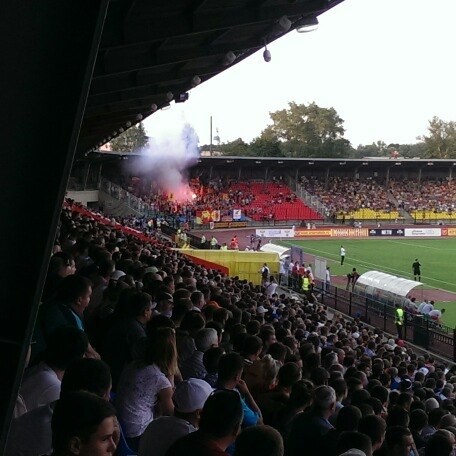 Тула - это по-настоящему футбольный город. В данную минуту при объявлении состава красно-жёлтых, каждую фамилию болельщики поддерживают криками.