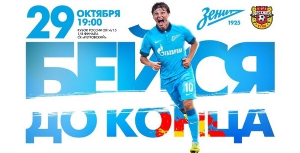 Питерские футболисты подготовили красочные афиши на игру 1/8 финала Кубка России, в которых красуется фраза «Бейся до конца».