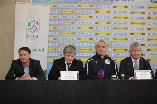 Я очень рад, очередному приезду в Россию. Дружба между нашими странами и в частности между ФНЛ и Серией Б становится все крепче. Очень приятно, что сегодняшняя товарищеская встреча будет проходит в тот момент, когда президент России Владимир Путин находится с рабочим визитом в Италии. Соперники мы лишь на поле, а за его пределами ищем пути взаимовыгодного сотрудничества. Так с президентом ФНЛ Игорем Ефремовым сегодня рассматривали вопрос подписания меморандума о взаимопонимании в плане развития футбольных инфраструктур.