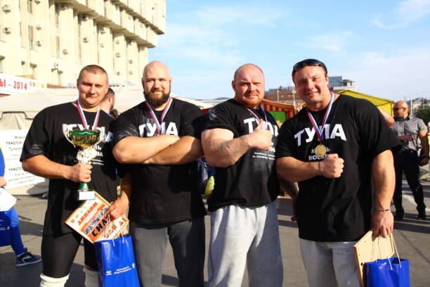 В упражнении «Становая тяга автомобиля» тулякам не было равных! Результат команды — 27 подъёмов, из них 11 на счету Сергея Шутова, 10 — Романа Половова. Второе место у москвичей — 8 подъёмов, третье у керченцев — 6 подъёмов.