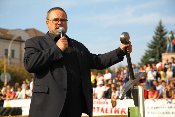 Сюрприз спортивного праздника - главный организатор соревнований, президент Тульской федерации бодибилдинга и фитнеса, президент Тульской федерации силового экстрима Андрей Павловский привёз на соревнования богатырский меч. Прикоснешься к его рукояти - и зарядишься силой и здоровьем! В этот день потрогать меч смог любой желающий - его специально для зрителей пронесли по кругу.