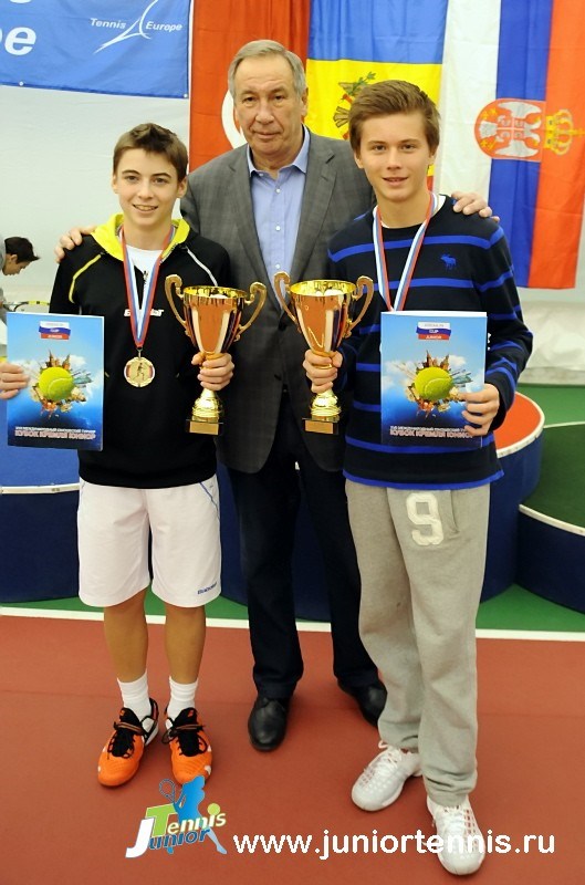 На фото: Тимофей Скатов (слева) и Раиль Ибрагимов с председателем Совета директоров "Кубка Кремля" Шамилем Тарпищевым.