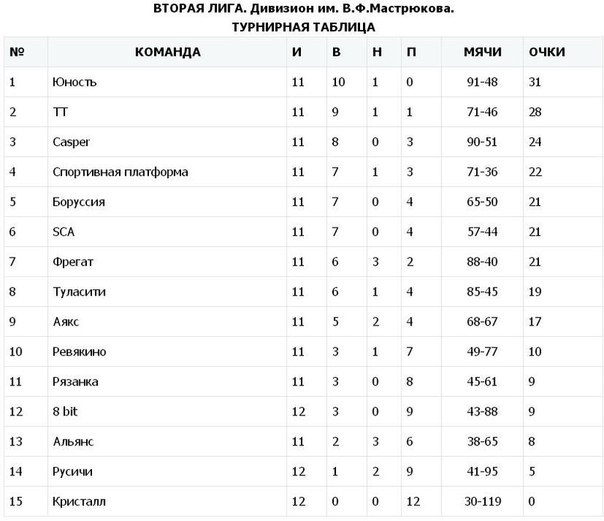 Дивизион Мастрюкова. Результаты тура: