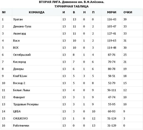 Очередной тур в дивизионе имени Владимира Алёхина запомнился упорством команд из нижней части таблицы в играх с лидерами: "Трудовые Резервы" только на последних минутах упустили столь желанный результат во встрече с "Ураганом", ЦКБА активно сопротивлялся тульским динамовцам, но также уступил. Центральная встреча тура между "Васей" и "Октябрьским" завершилась красивой и уверенной победой первых.