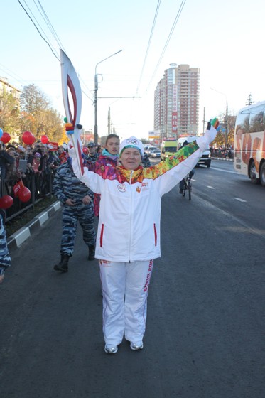– Я испытываю огромную гордость за то, что наша страна принимает в этом году Олимпийские игры, - поделилась впечатлениями перед эстафетой Надежда Александровна. – Эстафета олимпийского огня – грандиозный праздник для всей страны, 14 октября – праздник для Тулы и области. Стать факелоносцем во второй раз – это большая честь и огромная ответственность. Это уникальная возможность почувствовать себя причастной к международному Олимпийскому движению. Накануне эстафеты очень переживаю и волнуюсь, ощущения такие, как перед стартом на соревнованиях. Момент получения огня для меня самый важный. Желаю нашим спортсменам победы на Олимпиаде в Сочи!