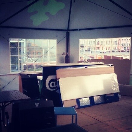 Надеемся, что заверения относительно продажи спиртного будут соблюдены. Поскольку накануне, 23 июля, внутри шатра был замечен аппарат для разлива пенного и, собственно, сама реклама данного напитка: