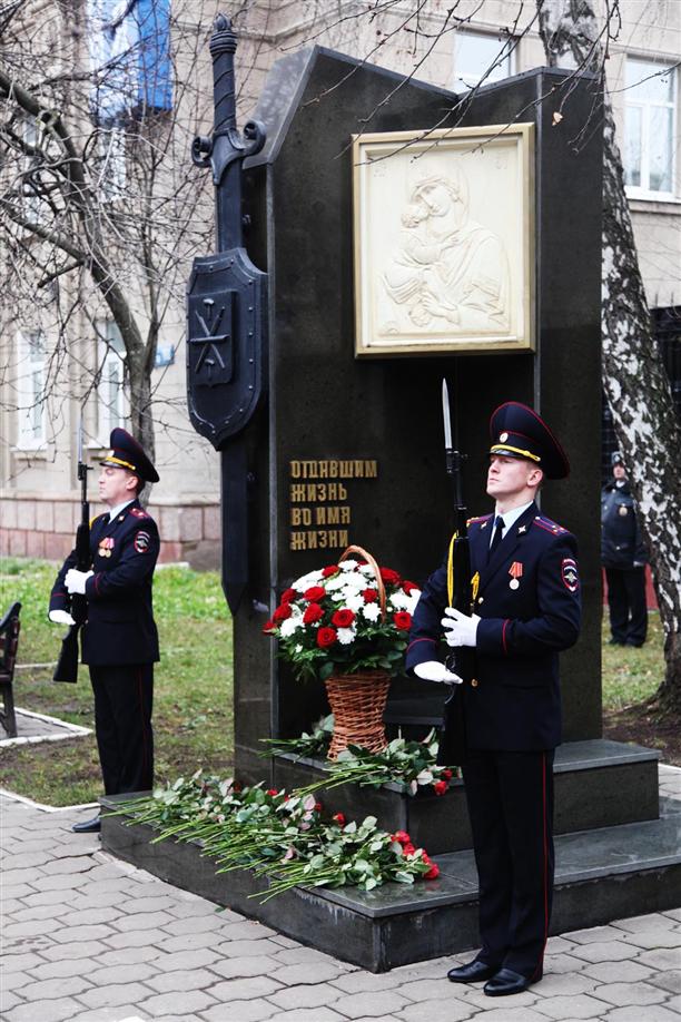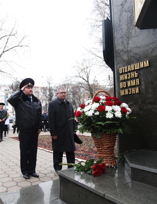Собравшиеся почтили минутой молчания память сотрудников, погибших при исполнении служебного долга, возложили цветы. Был дан оружейный салют.