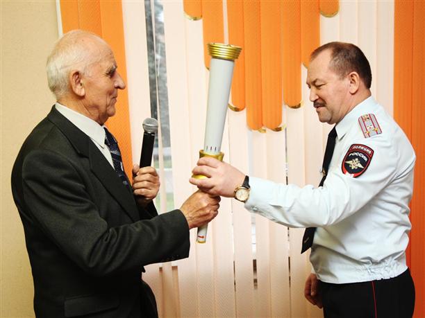 Бывший заместитель начальника УВД Тульской области, полковник полиции в отставке Евгений Иванович Камахин передал подарок – факел Олимпиады 1980 года, который ему был вручен за организацию охраны общественного порядка в нашем регионе во время проведения Игр в Москве. «Очень серьезная была оперативная обстановка, - вспоминает ветеран. – Два дня олимпийский огонь путешествовал по Тульской области, он прошел по Чернскому, Плавскому, Щекинскому, Ленинскому, Алексинскому, Заокскому, Ясногорскому районам, по центральным улицам города Тулы. Для людей это был большой праздник, который ничто не омрачило».