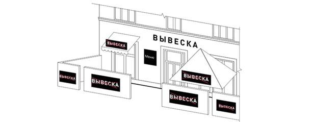 Также, по новым правилам, у входа в кафе или ресторан общепита предпринимателям можно дополнительно разместить меню рядом с вывеской. Единичный собственник целого здания может установить вывеску на крыше. Вывески на учреждениях, расположенных в подвальных помещениях, должны быть размещены не ниже 0,6 м от земли.