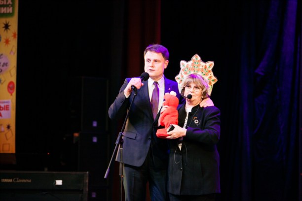 Чтобы открыть фестиваль, Алла Ильинична вызвала на сцену Владимира Груздева, подарила ему смехуна, а затем глава фестиваля и глава области произнесли заветные слова: «Фестиваль открыт!»