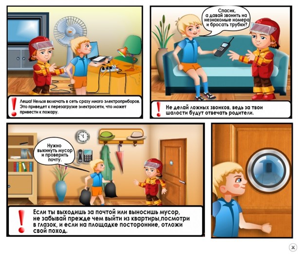 Кстати, есть и ещё один интереснейший раздел - "Комиксы". Увлекает надолго. Очень доступная информация для малышни о том, как вести себя, например, когда ты дома один и случилось ЧП.