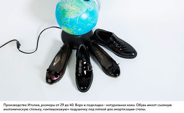 Магазин европейской детской обуви «Стильные ножки» представляет новую интересную коллекцию обуви для школы, выполненную только из натуральных материалов. Уже сегодня вы можете прийти вместе с вашим ребенком и выбрать обувь на любой случай: парадно-выходные туфли для девочек и мальчиков, повседневная обувь «на переобувку» и креативная линия кроссовок для занятий физкультурой.