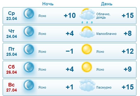 Однако, если верить сайту Gismeteo.ru, с 24 по 26 апреля в Туле ожидается резкое понижение температуры. Днем столбики термометра не поднимутся выше отметки +12 градусов по Цельсию, а ночью могут опускаться до +2 градусов. При этом на территории областного центра дождя не предвидится.