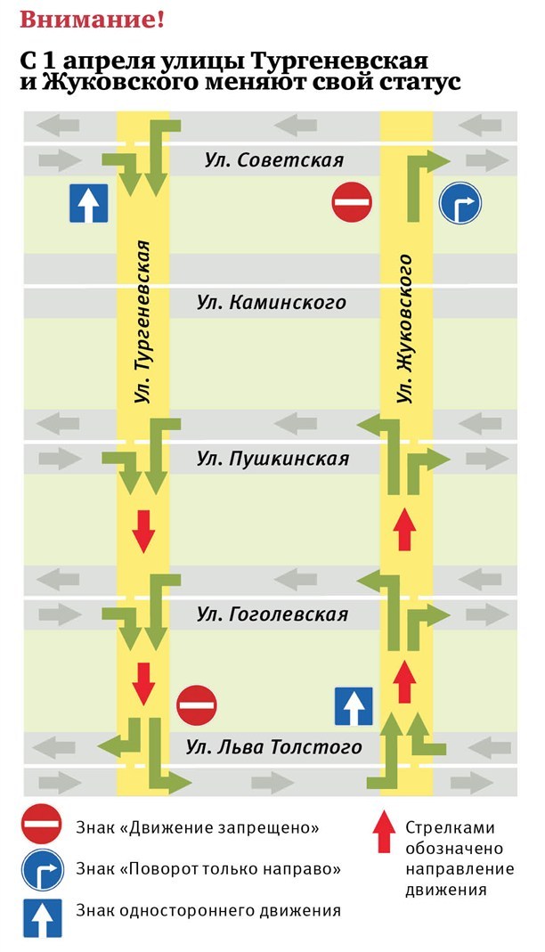 Напомним, с 1 апреля движение автомобилей по ул. Жуковского и Тургеневской станет односторонним. Первое время на улицах будут дежурить сотрудники ГИБДД, которые предупредят невнимательных водителей о нововведениях: