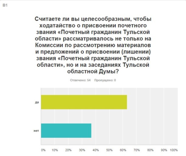 На сайте регионального правительства тулякам предлагают проголосовать за внесение изменений в процедуру присвоения звания "Почётный гражданин Тульской области". На сегодняшний день большинство респондентов ответили положительно: