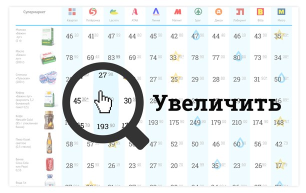 Звездочкой в таблице отмечены те позиции, которые в том или ином супермаркете были благоразумно заменены на аналоги (ведь не поедешь же за любимой туалетной бумагой со вкусом киви на другой конец города. скорее плюнешь и купишь клубничную в том же самом магазине):