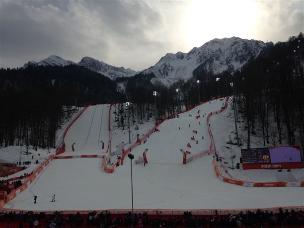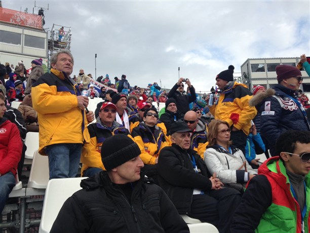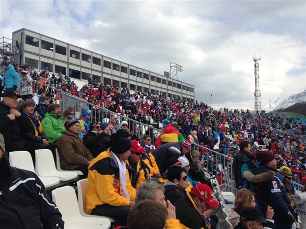 Трибуны болельщиков полны – наш спецкор Cветлана Колоскова присылает фото прямо из горного кластера: