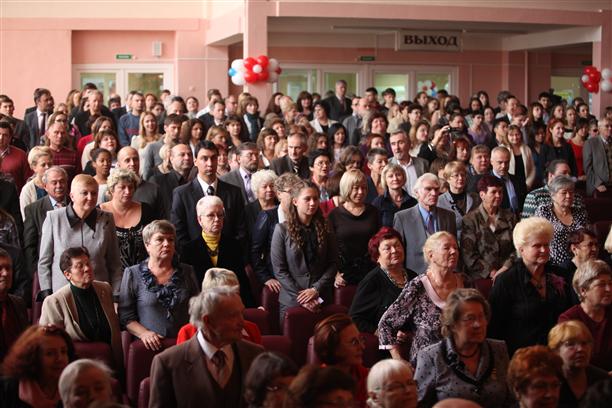 Гимн педагогического университета  все слушали стоя, а многие даже подпевали, услышав знакомые слова.