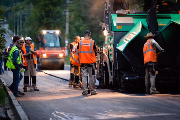 На часах было уже 22.00, а работа кипела вовсю: на месте трудились несколько машин подрядчиков и десятки рабочих.