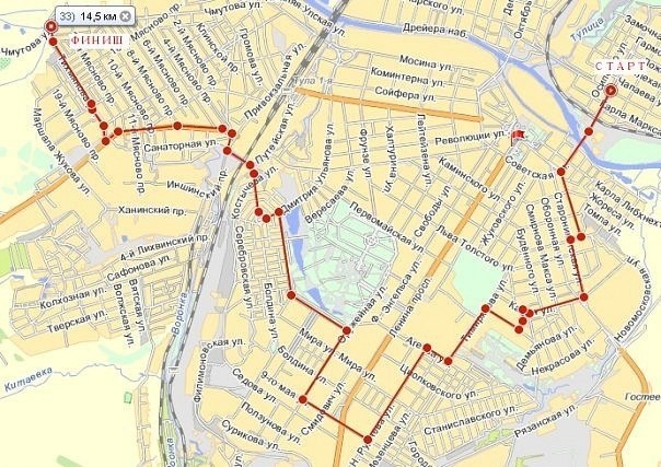 Велоколонна собралась возле памятника знаменитой "катюши" в Пролетарском районе. Общий маршрут следования составил порядка 14,5 км.