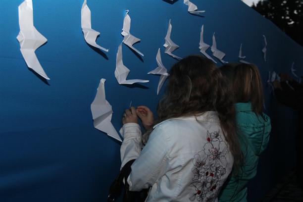 Любой желающий принять участие в акции и прикрепить бумажного голубя успеет это сделать: акция будет проходить сегодня на площади Победы до 19:30.