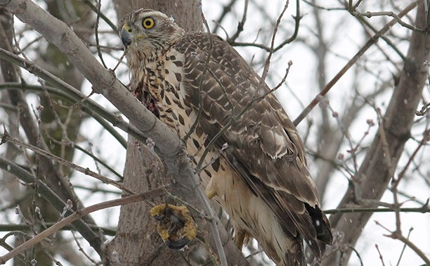 Ястреба пытались отловить с помощью длинной ветки, смазанной клеем для ловли грызунов.
