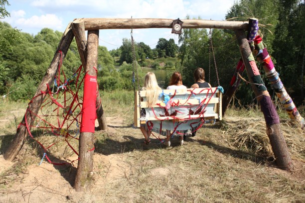 Например, в глубине леса можно было обнаружить торшер, кресло и книжные полки, а на берегу пруда стояли садовые качели.