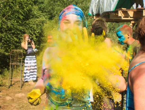 Но, пожалуй, самым ярким и необычным для Тулы моментом фестиваля стала битва на красках Холи. Яркий порошок взлетал в небо, осыпая всех вокруг.
