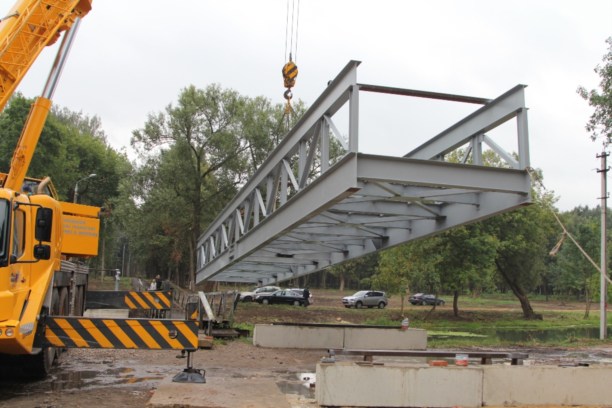 Новый пешеходный мостик устанавливают взамен старого, который не являлся безопасным для эксплуатации.
