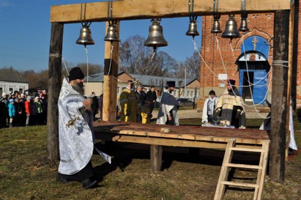 Здесь в торжественной обстановке произошло освящение колоколов.