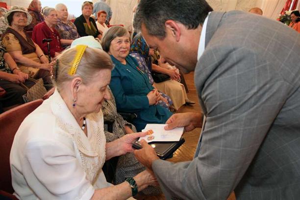 Тем, кому в силу возраста было затруднительно подняться на сцену, медали вручали прямо в зале.