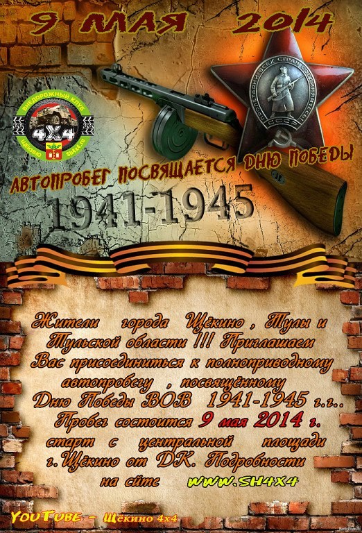 Стартует автоколонна с центральной площади Щекино (от ДК). Въезд для участников будет открыт с 9.30 до 10.20.