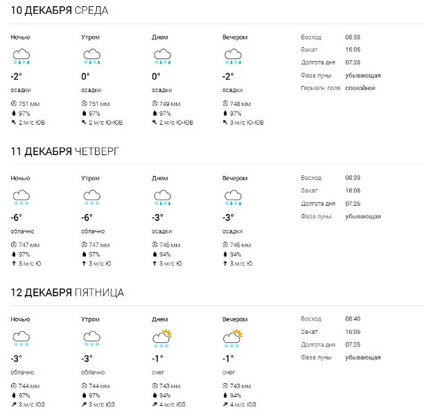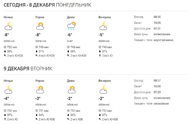 Отклонением является и практически полное отсутствие снежного покрова, который должен составлять в декабре 10 см. С понедельника, 8 декабря, некоторые осадки в виде снега всё же пройдут. Своего пика они достигнут в среду и четверг, однако назвать их метелями или снегопадами специалисты метеоцентра не могут.