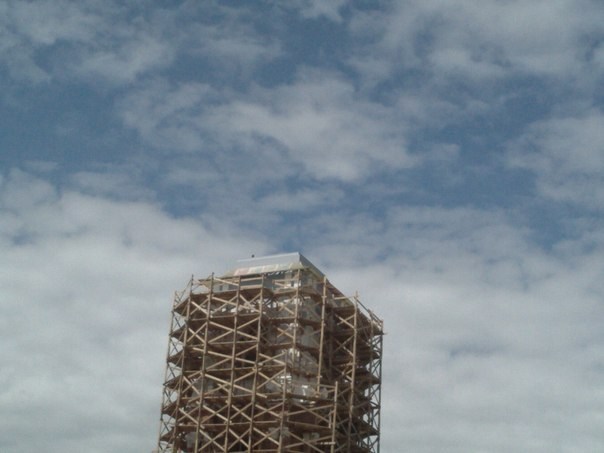 Чтобы поднять детали шпиля на верхушку колокольни, пришлось заказывать вертолет из Москвы.
