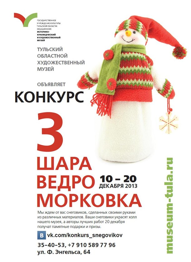 Тульский областной художественный музей объявляет о конкурсе "Три шара, ведро, морковка", который проходит с 10 по 20 декабря 2013 года.