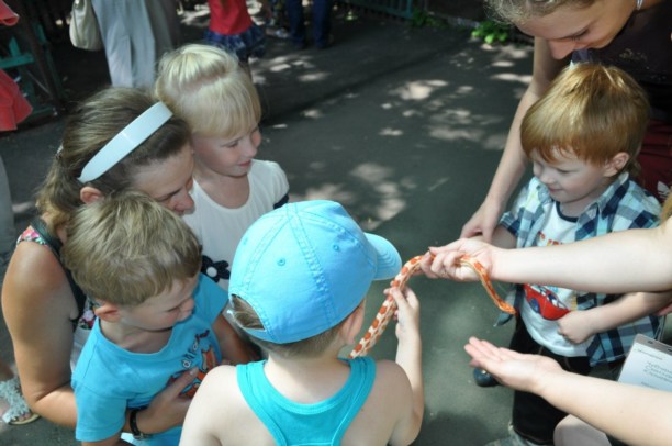 Самые маленькие гости праздника храбро брали в руки змей и других обитателей экзотариума.