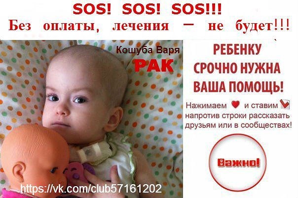 Малышке поставили страшный диагноз - Неходжкинская лимфома (рак). На данный момент Варенька находится в Республике Беларусь (РНПЦ), где прошла 5 блоков химиотерапии. Но, к сожалению, лечение не принесло ожидаемых результатов, и состояние девочки остается тяжелым. Единственная клиника, которая готова принять Варюшу на лечение, - клиника им. Г. Гейна в Дюссельдорфе. Счет на лечение поверг нас в шок - 500 000 €! Лечение нужно начинать как можно быстрее, т.к. опухоль прогрессирует! Я никогда не думала, что буду просить о помощи, но без участия небезразличных людей нам не обойтись. Мы готовы на всё, и если на Украине нам не в силах помочь, будем использовать все возможные варианты.