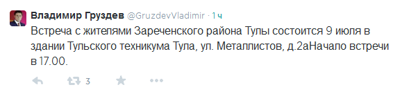 Рабочая поездка губернатора Тульской области Владимира Груздева в Заречье пройдёт 9 июля в здании техникума (ул. Металлистов, 2-а).
