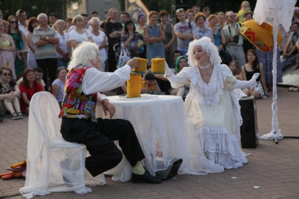 Главным шоу вечера стал совместный проект театра «Эрмитаж» и группы «Тень города». На импровизированной сцене соорудили типичный тульский дворик советских времен. На нем музыканты вместе с туляками распивали компот, слушали песни патефона и вместе пели «Я вам не скажу за всю Одессу» и другие известные дворовые песни.