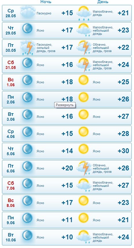 Однако уже с первых чисел июня установится ясная погода с температурой +25…+30 градусов. В ночные часы столбик термометра покажет +14…+18. Поддерживать теплую погоду будет юго-восточный ветер 1-4 м/с.